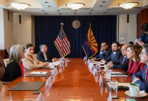 PHOENIX, ARIZONA, 14 de febrero de 2024.- A través de reuniones estratégicas con los líderes del sector gubernamental, académico y empresarial de Arizona, la gobernadora de Baja California, Marina del Pilar Avila Olmeda, afianzó los vínculos entre ambos estados, además de generar condiciones para potencializar el talento de las y los jóvenes para asegurarles un futuro más próspero.