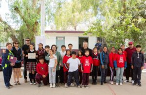 Como gesto de cercanía con la comunidad escolar, la presidenta municipal obsequió tres balones de fútbol a las y los estudiantes de la primaria sede, lo que fue recibido con entusiasmo por parte del alumnado. Con estas acciones, el Gobierno de Playas de Rosarito reafirma su compromiso con la niñez y juventud, impulsando el deporte como base para un desarrollo sano, fuerte y con sentido de comunidad.
