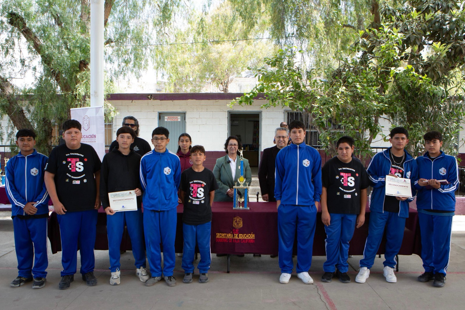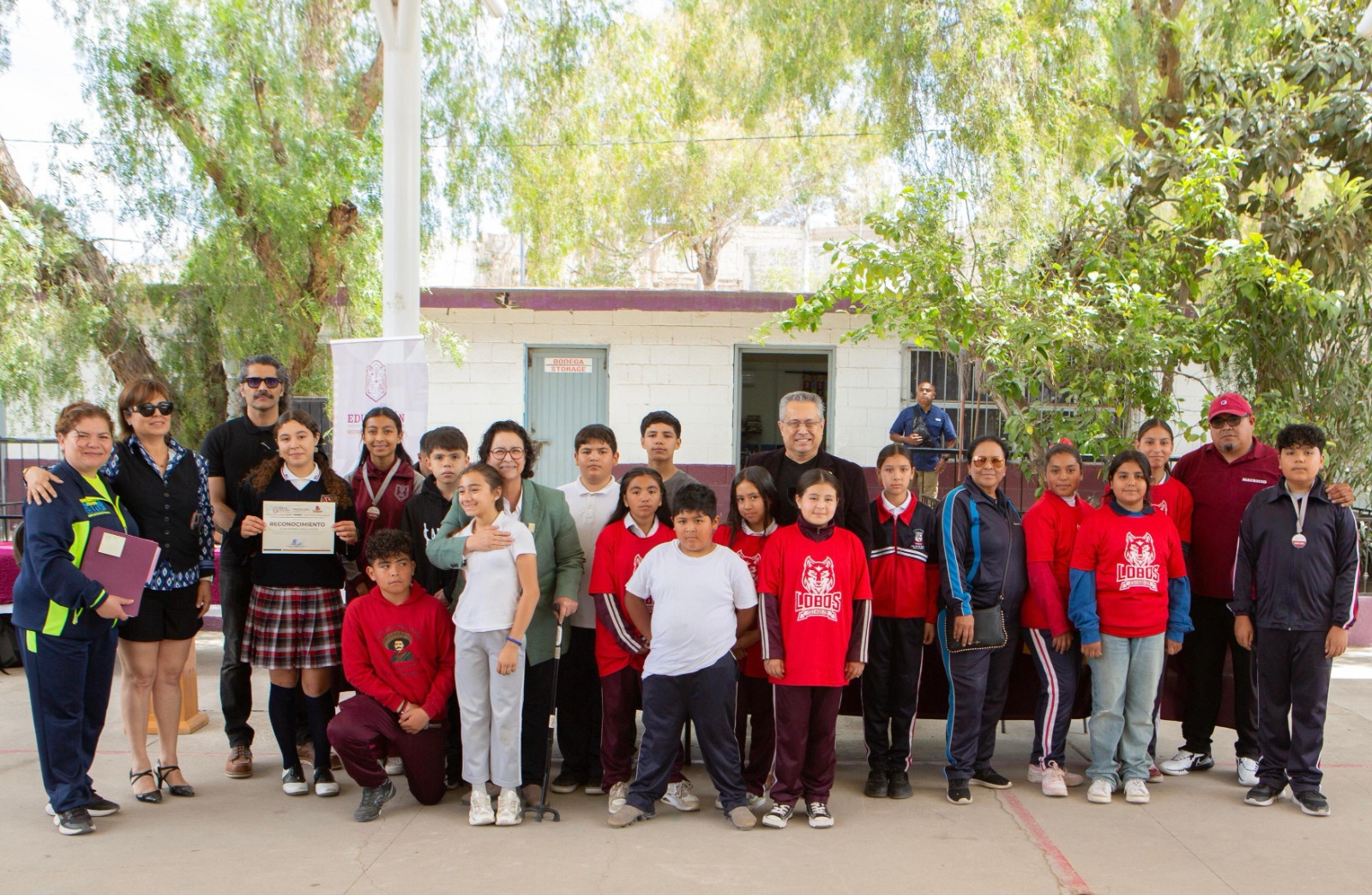 Asimismo, se extendieron felicitaciones a quienes representarán a Playas de Rosarito en la fase nacional. En ajedrez, fueron reconocidos Zoé Valentina Reyes Aguilar (individual) y el equipo mixto conformado por Martin Hiram Arechiga Acevedo, Esdras Emiliano Heredia González, Elizabeth Rodríguez Oropeza y Matías Leonel Terrazas López, junto a su entrenador, el maestro Gilberto Cano. En atletismo, se destacó la participación de Dana Ruiz Tejeda, de la secundaria No. 32 Abraham Lincoln.