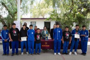 Durante la premiación, la alcaldesa y el delegado de educación, entregaron reconocimientos a 23 estudiantes ganadores de la etapa municipal en disciplinas como balonmano, básquetbol, fútbol y voleibol, en ambas ramas. “Desde el gobierno municipal, vamos a seguir apoyando este tipo de actividades. Porque cada cancha rehabilitada, cada torneo organizado, cada niño o niña que encuentra en el deporte un propósito, es una victoria para toda la ciudad”, expresó Rocio Adame.