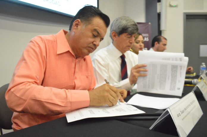 La firma se llevó a cabo por parte del titular de la SADERBC, con el rector del CETYS, Fernando León García; y se contó con la presencia de German Corrales Flores, subsecretario de Agricultura; Edna Alicia Noriega Ituarte, directora del CCIIAA; Francisco Vélez Torres, director de CETYS campus Ensenada; y Diana Celaya Tentori, directora del CEVIT