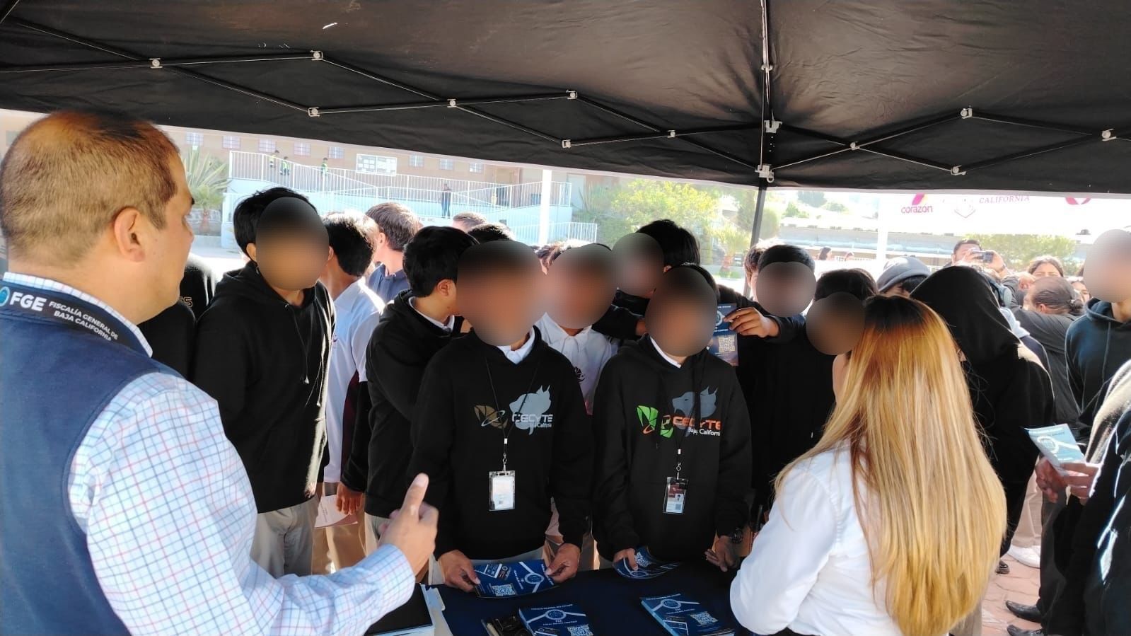 TIJUANA.- El programa “Fiscal Enlace Contigo”, coordinado por el Lic. Benito Velázquez Hernández, implementado por la Fiscalía General del Estado de Baja California (FGE), bajo las directrices de su titular, la Dra. Ma. Elena Andrade Ramírez, continúa impulsando acciones firmes para mantener una relación cercana y de confianza con la ciudadanía. En esta ocasión se llevó a cabo una jornada de atención en las instalaciones del CECyTE Plantel Plan Libertador, en el municipio de Playas de Rosarito.
