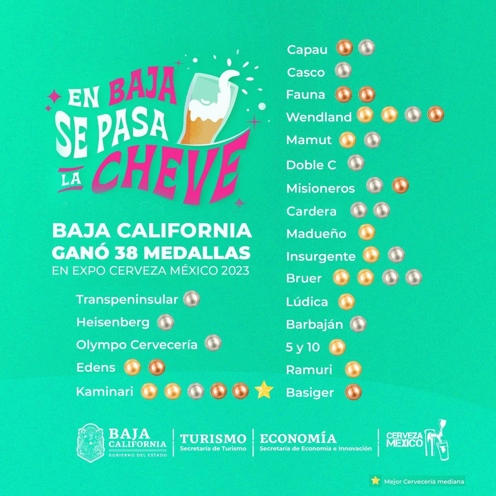 La delegación de Baja California obtuvo un total de 38 medallas en 2023, superando su marca de 37 medallas en la edición 2022; además, Kaminari Brewing recibió el reconocimiento especial Mejor Cervecera Mediana por segundo año consecutivo.