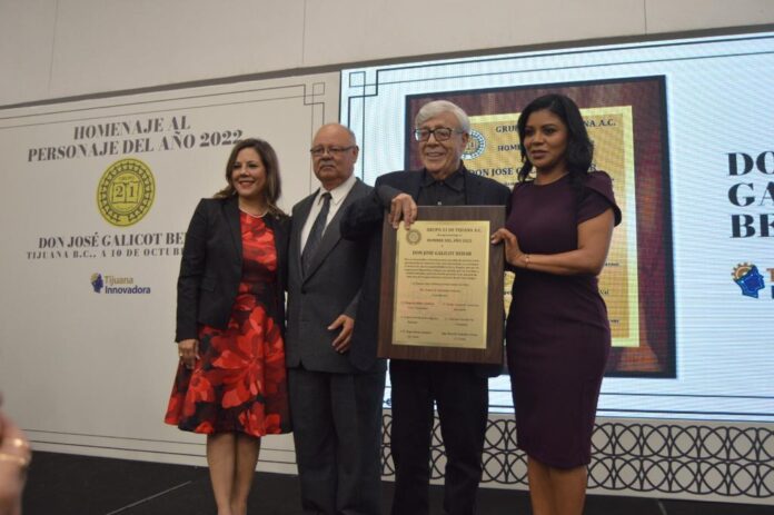 TIJUANA BC, 10 de octubre de 2022.- Por su liderazgo y compromiso para trabajar en pro de una mejor Tijuana, el empresario José Galicot Behar fue homenajeado por parte del Grupo 21 como Personaje del año 2022.