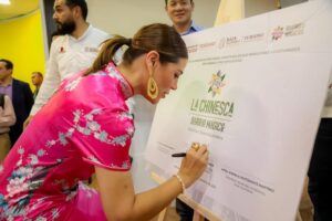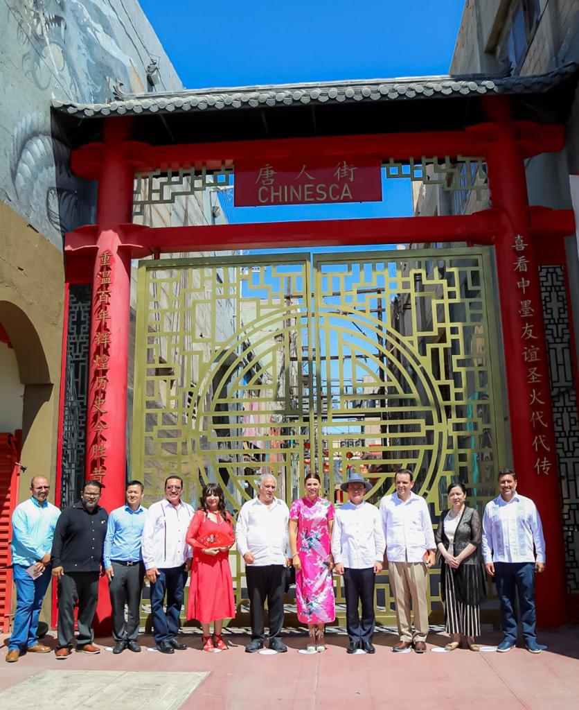 La titular del Poder Ejecutivo indicó que desde su periodo como alcaldesa de Mexicali se rehabilitó el callejón de La Chinesca que en sus murales narra la historia de la comunidad chino mexicalense; además, fue reubicada la Pagoda China en la remodelada Glorieta Morelos; y se instaló la escultura El Cimaleón que representa la fusión del borrego cimarrón, emblema bajacaliforniano, con un león propio de las danzas tradicionales chinas.