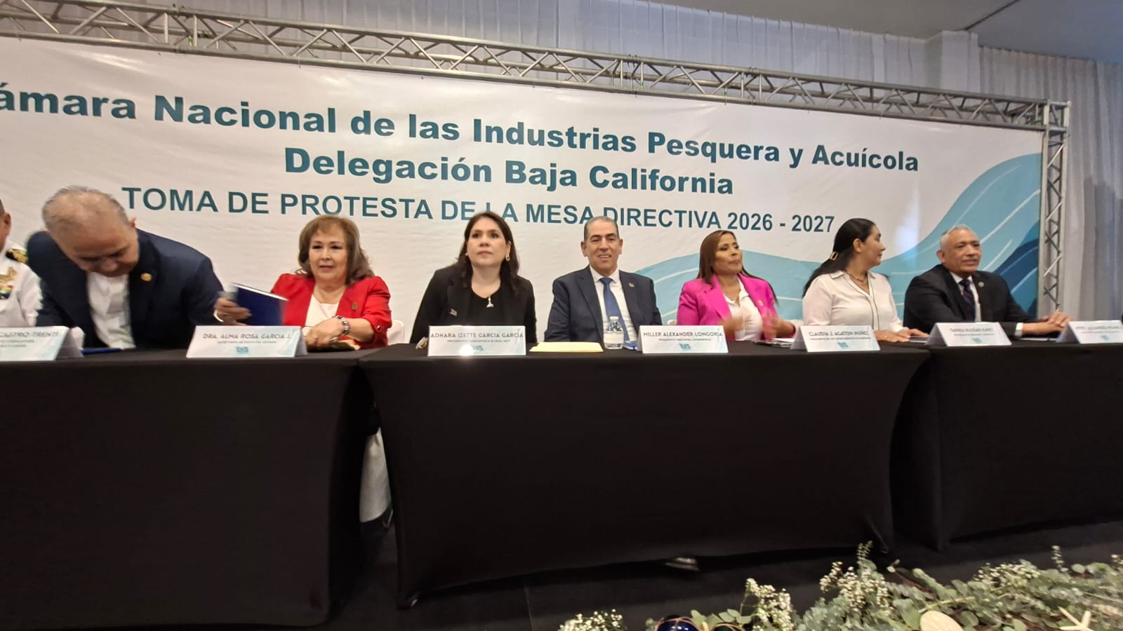 ENSENADA BC, 16 de abril de 2026.- Importante mensaje emitió la presidenta entrante de la Cámara Nacional de las Industrias Pesqueras y Acuícolas Delegación Baja California, (CANAINPESCA BC) Adhara García García, durante su toma de protesta como tal, la mañana de ayer miércoles 15 de abril ante el sector pesquero de la entidad, así como ante autoridades de los tres niveles de gobierno, y el presidente de la CANAINPESCA a nivel nacional, Miller Alexander Longoria.