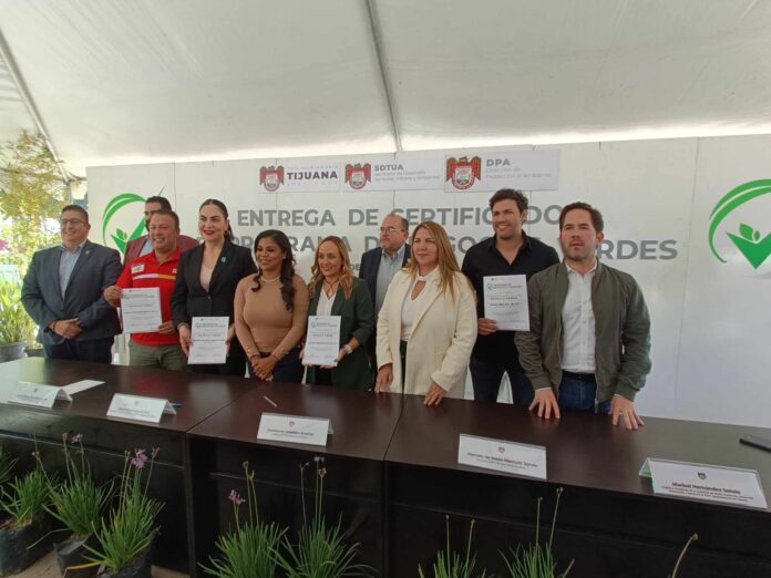 TIJUANA BC, 30 de octubre de 2023.- Con el objetivo de reconocer de manera pública a los negocios que se han inscrito al programa “Negocios Verdes” de manera voluntaria desde agosto de 2021, la alcaldesa Montserrat Caballero Ramírez hizo entrega de certificados a 373 comercios socialmente responsables con el medio ambiente.
