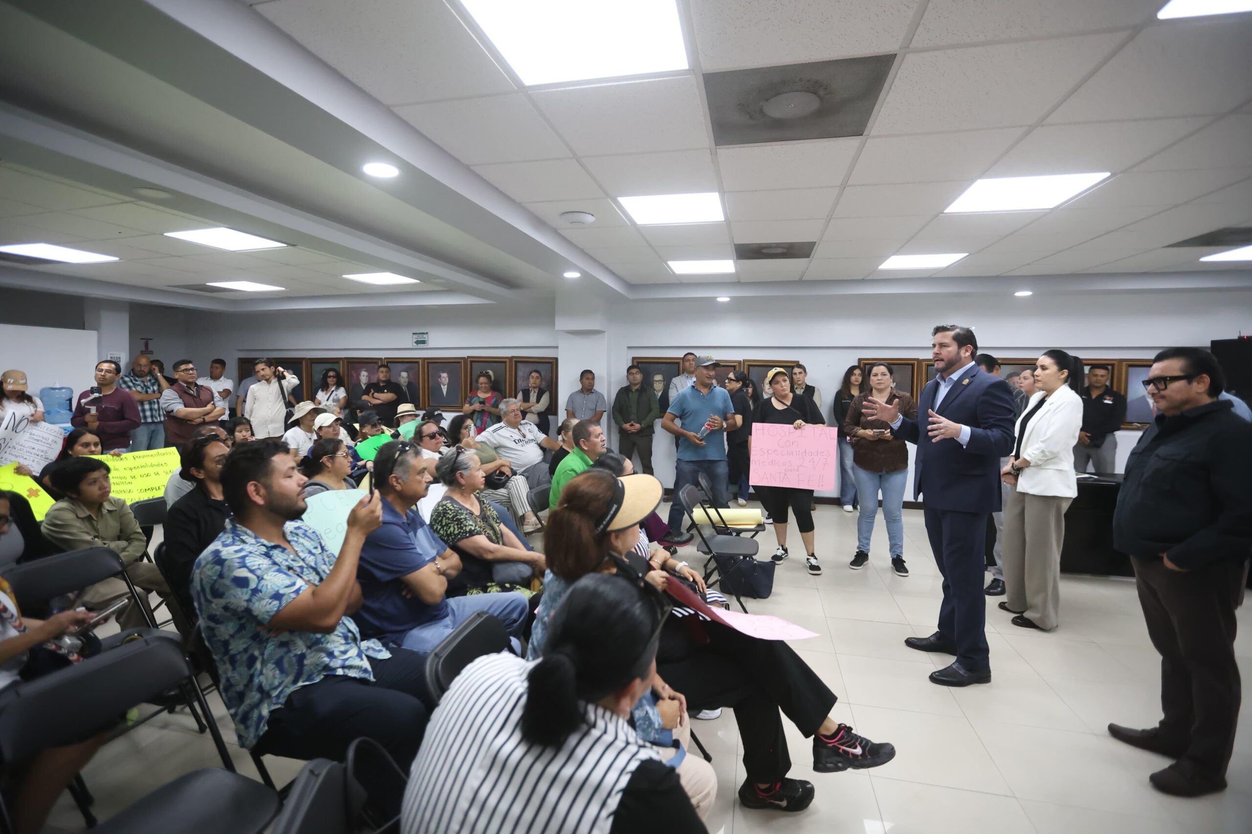 MOVIMIENTO SANTA FÉ SE MANIFIESTA EN PALACIO MUNICIPAL Y SON ATENDIDOS DIRECTAMENTE POR ISMAEL BURGUEÑO