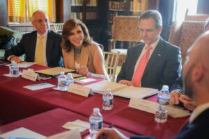 WASHINGTON D.C., EE UU, 27 de julio de 2023.- Baja California ofrece ventajas logísticas, geográficas, jurídicas y de capital humano calificado que la hacen un espacio ideal para invertir, afirmó la gobernadora Marina del Pilar Avila Olmeda durante una reunión con directivos de la empresa Tesla en Washington D.C., realizada ante la presencia del Embajador Mexicano Esteban Moctezuma Barragán.