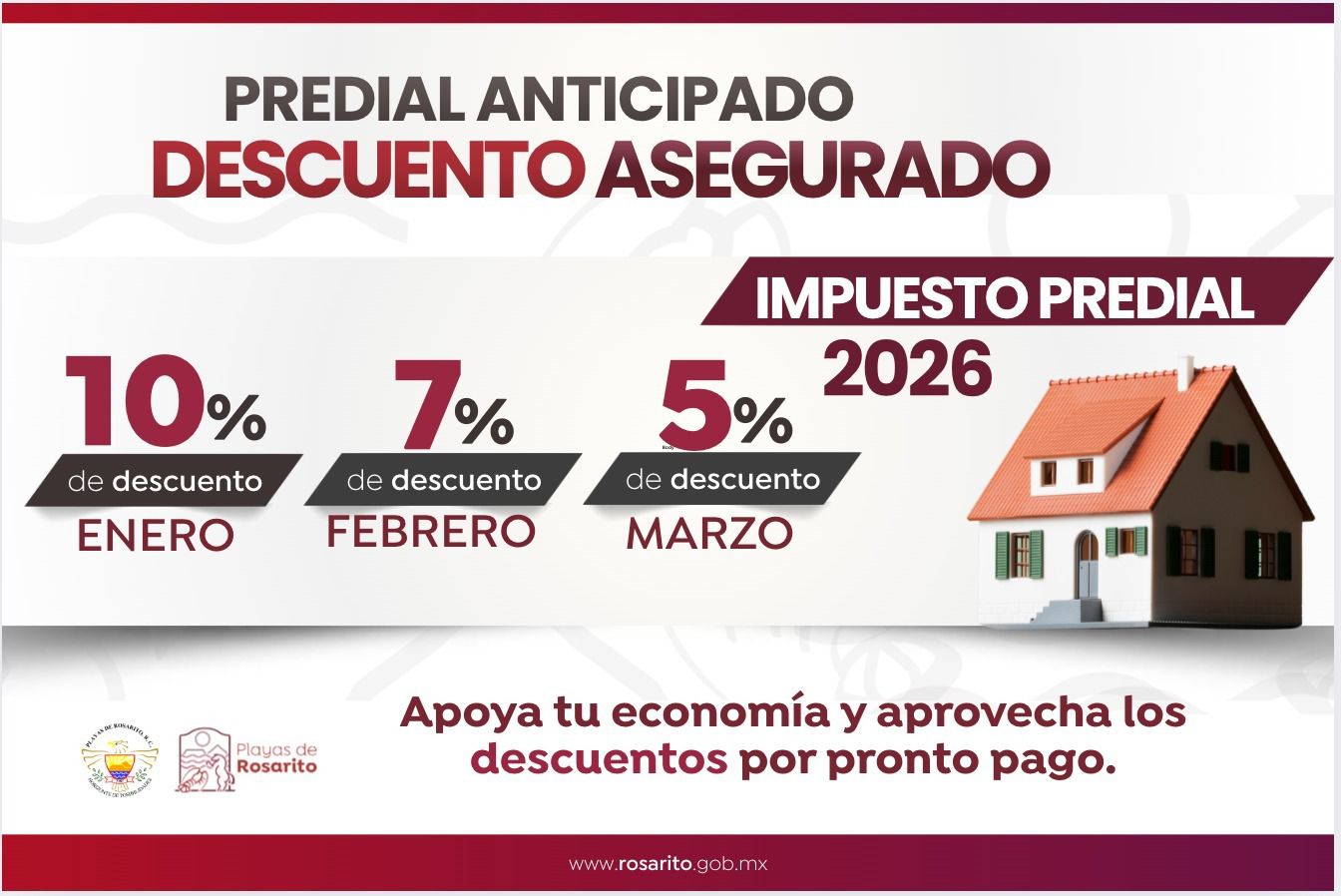 Playas de Rosarito. – Con el objetivo de incentivar el cumplimiento ciudadano y fortalecer las finanzas municipales para la mejora de servicios públicos, el 10º Ayuntamiento de Playas de Rosarito, anunció el programa de descuentos para el pago del Impuesto Predial 2026.