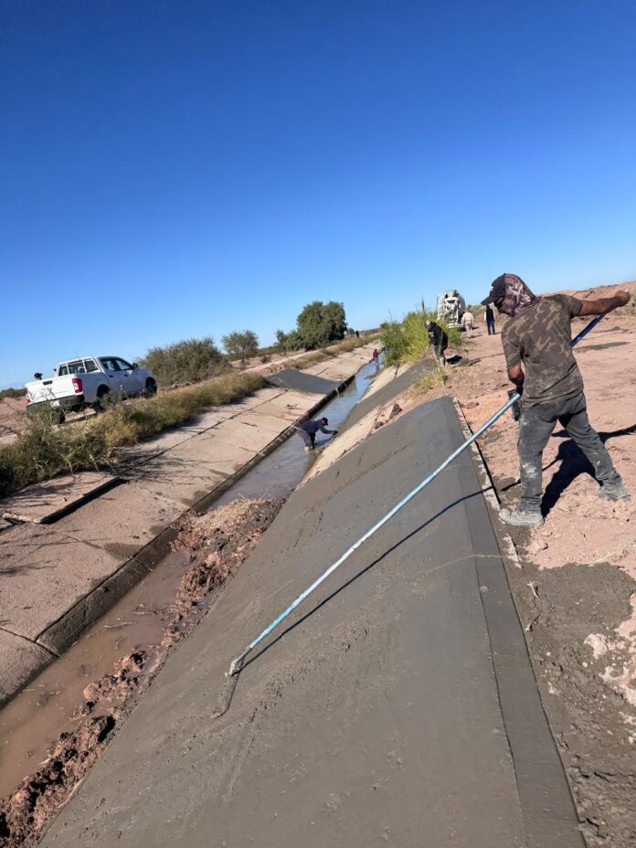 En primera instancia, se limpiaron tramos del canal alimentador y se reemplazaron losas de concreto que lo requerían.
