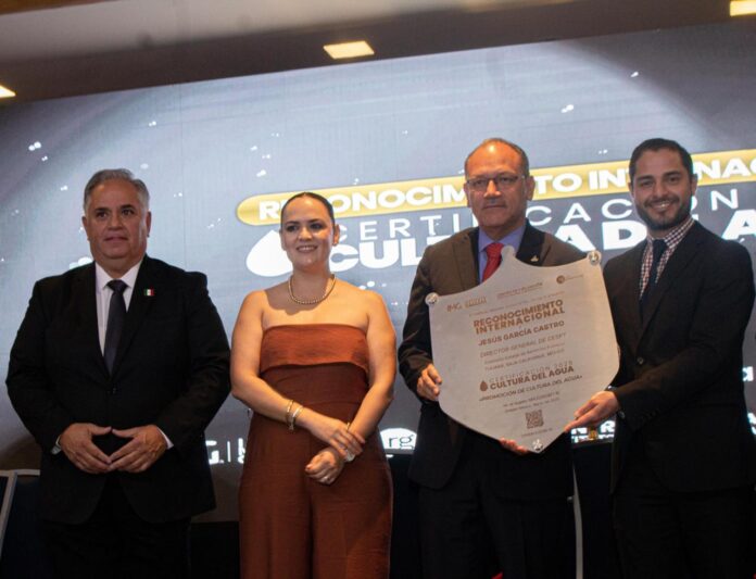 El director general de la CESPT, Jesús García Castro, recibió esta distinción en una ceremonia celebrada en la Ciudad de México, por el cumplimiento del estándar EC0180, que acredita a los organismos de agua potable que han capacitado a su personal en la promoción de prácticas responsables y sostenibles en el uso y cuidado del agua.