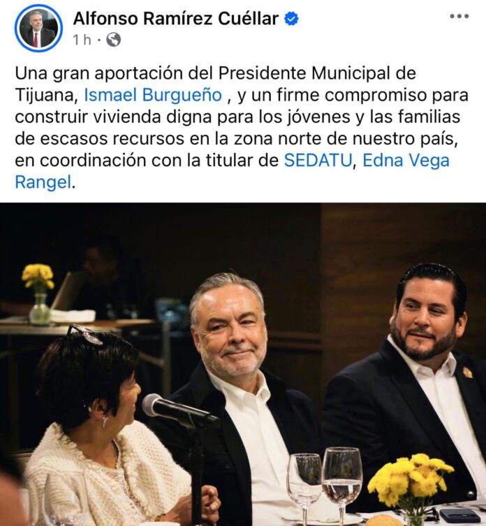 Tijuana.- El trabajo coordinado entre el gobierno de Tijuana y la federación rinde frutos para la frontera. El vicecoordinador de MORENA en la Cámara de Diputados, Alfonso Ramírez Cuéllar, resaltó el compromiso del alcalde de la frontera más visitada del mundo, Ismael Burgueño Ruiz, al posicionar a la ciudad como un referente en la ejecución del Plan Nacional de Vivienda impulsado por la presidenta de México, Claudia Sheinbaum Pardo.