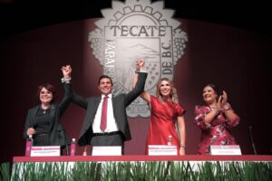 La gobernadora también asistió a la ceremonia solemne de toma de protesta de Román Cota Muñoz, presidente municipal del XXV Ayuntamiento de Tecate.