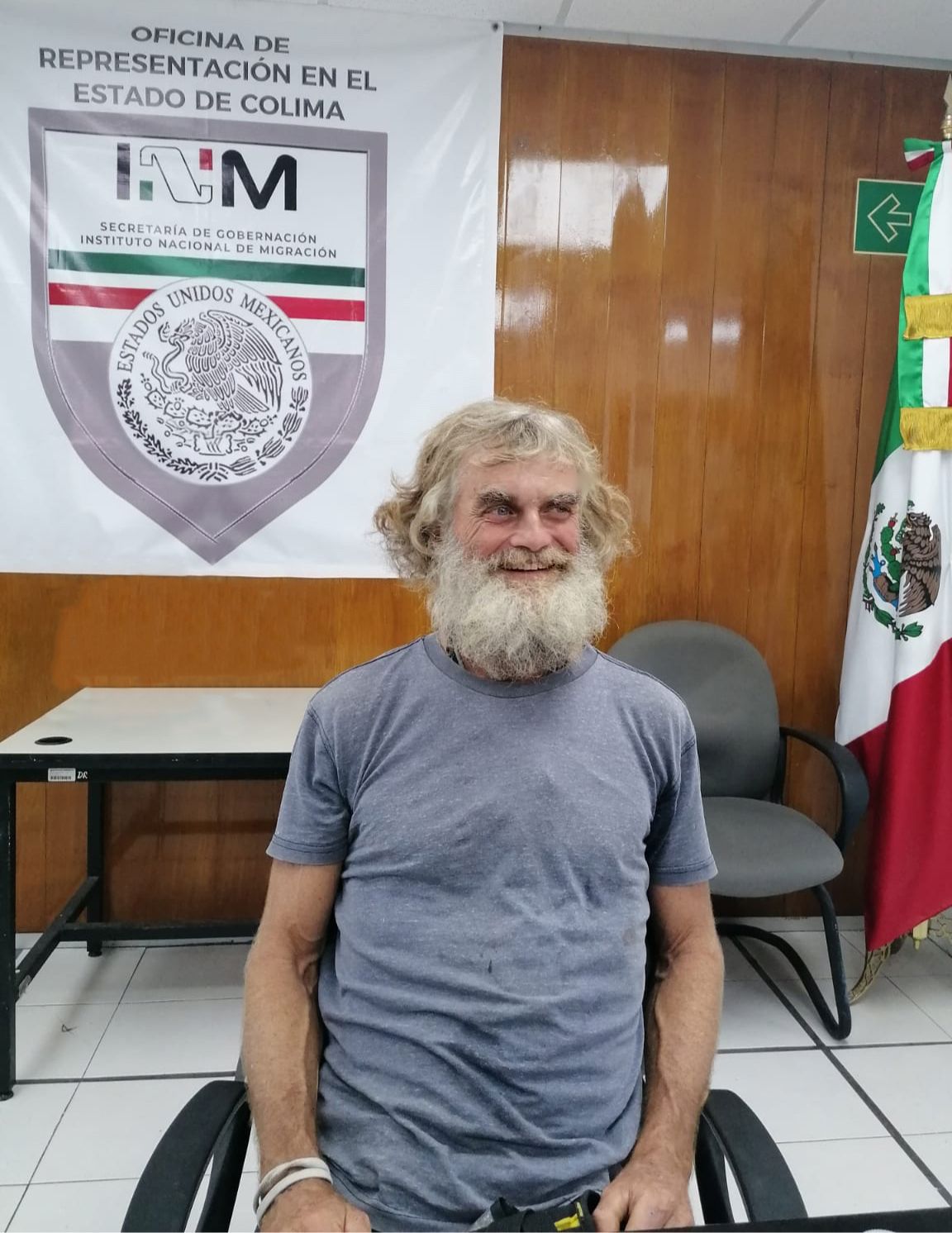 COLIMA, COLIMA, 18 de julio de 2023.- El Instituto Nacional de Migración (INM) auxilia a la persona de nacionalidad australiana de nombre Timothy Lyndsay Shaddock, quien fue avistado y rescatado, junto a su perrita “Bella” por la tripulación de una nave pesquera tras
