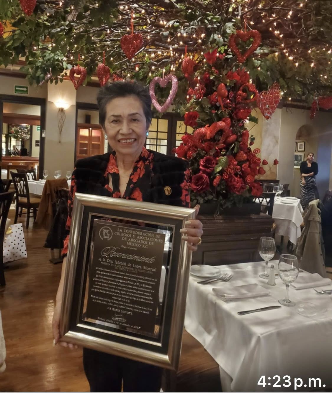 El primer reconocimiento que le otorgaron a la Dra. Xóchitl de Labra fue por su destacada participación al ser la primera mujer Presidente de la Confederación de Colegios y Asociaciones de Abogados de México A. C. (CONCAAM).