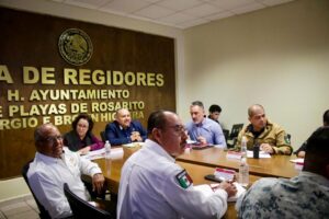 PLAYAS DE ROSARITO BC, 08 de noviembre de 2024.- La presidenta municipal, Rocio Adame Muñoz,e encabezó una nueva sesión de la Mesa de Seguridad Regional Tijuana-Rosarito, reafirmando su compromiso por fortalecer la coordinación interinstitucional y garantizar la seguridad de las familias rosaritenses.