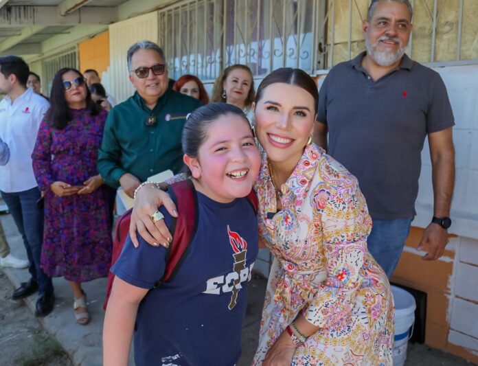 La mandataria estatal tuvo una convivencia con la comunidad de la Escuela Primaria «Carmen Piña Rodríguez» en el municipio de Mexicali, donde tuvo la oportunidad de dialogar con alumnas, alumnos, madres y padres de familia, así como con docentes y personal administrativo de la escuela que señaló los avances en la preparación del plantel para recibir a las y los estudiantes, aunado al apoyo que han recibido por parte de la Secretaría de Bienestar y la Secretaría de Educación.