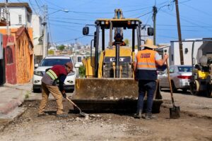 En Playas de Tijuana se ejecutaron diversas acciones, como bacheo con mezcla asfáltica caliente en Paseo Playas de Tijuana, sección Jardines, así como en calles de la colonia Miramar, abarcando 400 metros cuadrados.