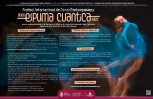 ENSENADA BC, 03 de febrero de 2026.- El Centro Estatal de las Artes Ensenada (CEART) del Instituto de Servicios Culturales de Baja California invita a la comunidad dancística estatal, nacional e internacional a postular proyectos artísticos para integrar la programación 2026 de la XVII edición del Festival Internacional de Danza Contemporánea Espuma Cuántica, que se llevará a cabo del 26 al 30 de mayo de 2026 en la ciudad de Ensenada.