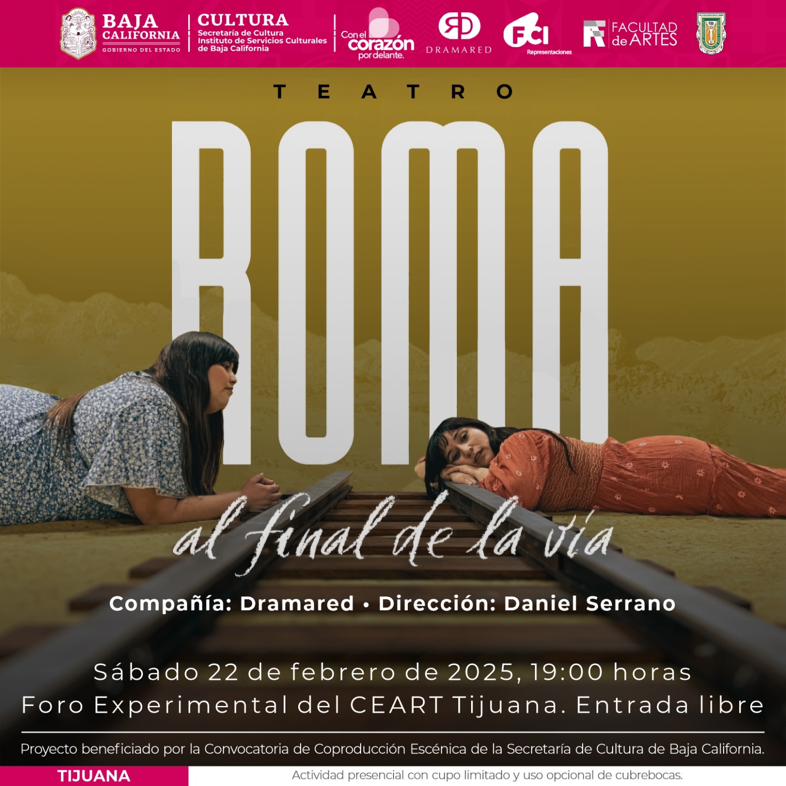 El tercer proyecto es «Roma al Final de la Vía», una obra teatral de la compañía Dramared, dirigida por Daniel Serrano, ganador del Premio Nacional de Dramaturgia Víctor Hugo Rascón Banda 2016. Narra la historia de Emilia y Evangelina, dos niñas sonorenses que sueñan con llegar a Roma y encuentran en las vías del tren su única posibilidad de escape. Se presentará el 22 de febrero, en el Foro Experimental del CEART Tijuana a las 19:00 horas con entrada libre.