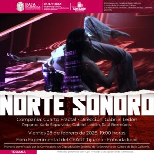 Finalmente, «Norte Sonoro», de la compañía Cuarto Fractal y dirigida por Gabriel Ledón Flores, fusiona danza contemporánea con paisajes sonoros y visuales para explorar la conexión entre el cuerpo y el territorio. La puesta en escena transforma el espacio en un paisaje vivo donde imagen, sonido y movimiento se entrelazan. La función será en el CEART Tijuana a las 19:00 horas con admisión libre.