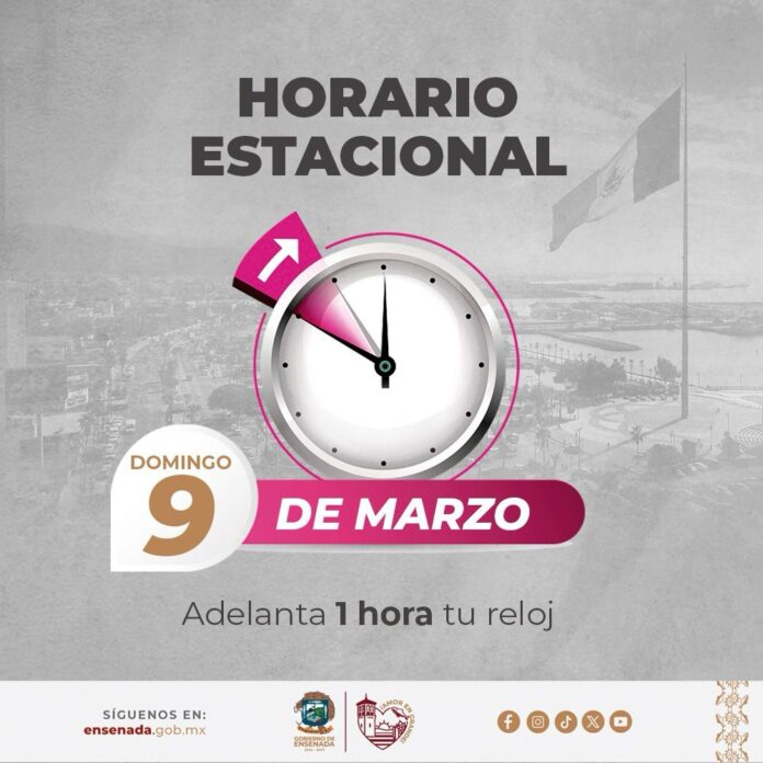 ENSENADA BC, 04 de marzo de 2025.- En cumplimiento al artículo 5 fracción II de la Ley de los Husos Horarios de los Estados Unidos Mexicanos, el 9 de marzo inicia el horario estacional fronterizo norte.
