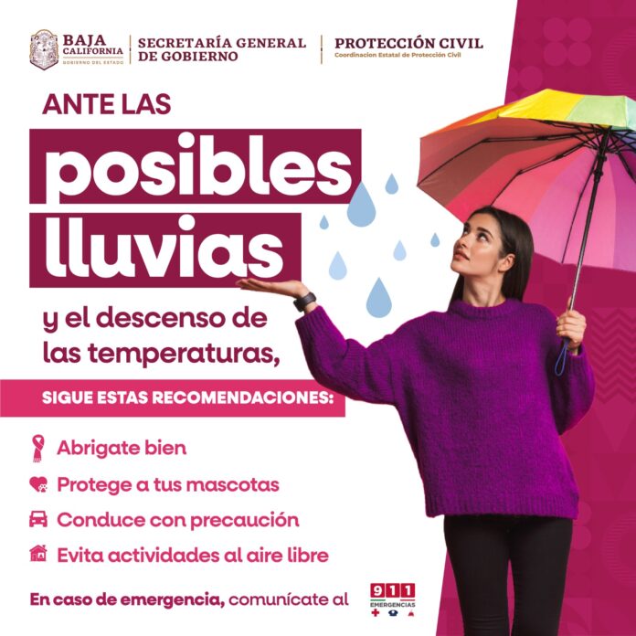TIJUANA BC, 02 de enero de 2026.- La Coordinación Estatal de Protección Civil (CEPC) con base en datos del Servicio Meteorológico Nacional (SMN) informa a la ciudadanía sobre el pronóstico de precipitaciones para Baja California durante el primer fin de semana del 2026, a partir de este sábado 3 y hasta el martes 6 de enero.