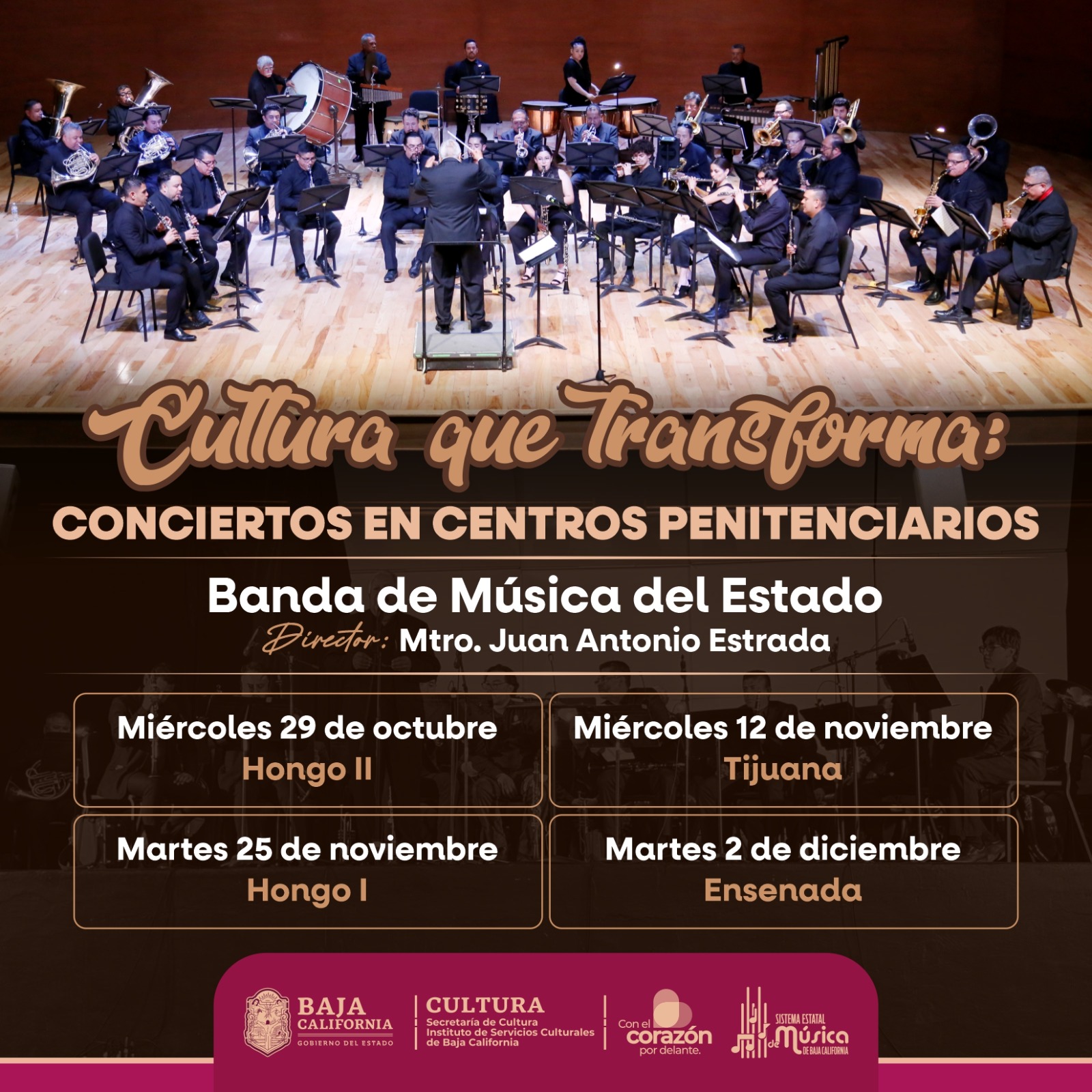 En coordinación con el Centro de Coordinación, Enlace y Seguimiento del Sistema Penitenciario (CECISPE), la Banda de Música del Estado dio inicio a una serie de presentaciones en los distintos Centros Penitenciarios de Baja California, con el propósito de fomentar la convivencia, la sensibilidad artística y el acceso a la cultura dentro de estos espacios.