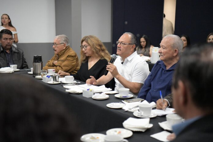 Durante su exposición con la agrupación, presidida por Gilberto Leyva Camacho, sostuvo un diálogo con los asistentes sobre las acciones que se realizan en el presente periodo y los retos que enfrenta la región en materia hídrica.