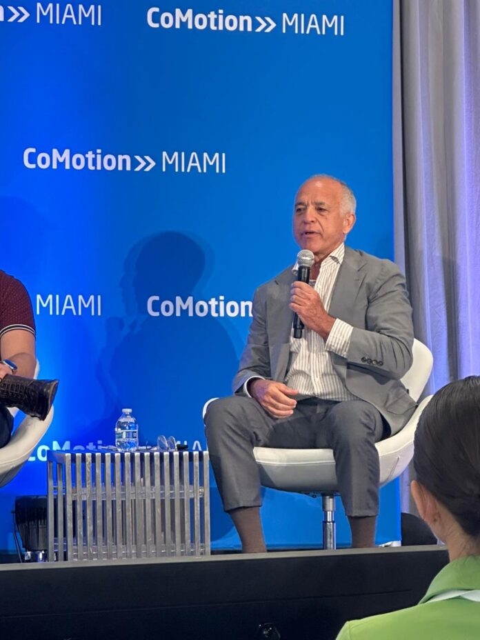 MIAMI, FL, 11 de mayo de 2023.- Con el objetivo de promover las acciones del Gobierno de Baja California y sus proyectos estratégicos encaminados a la realización de puertos y medios de movilidad sustentables, el secretario de Economía e Innovación, Kurt Honold Morales participó como panelista en el Congreso CoMotion Miami 2023 en las sesiones de la importancia de la visibilidad y accesibilidad en la red multimodal de carga y el futuro de los puertos.