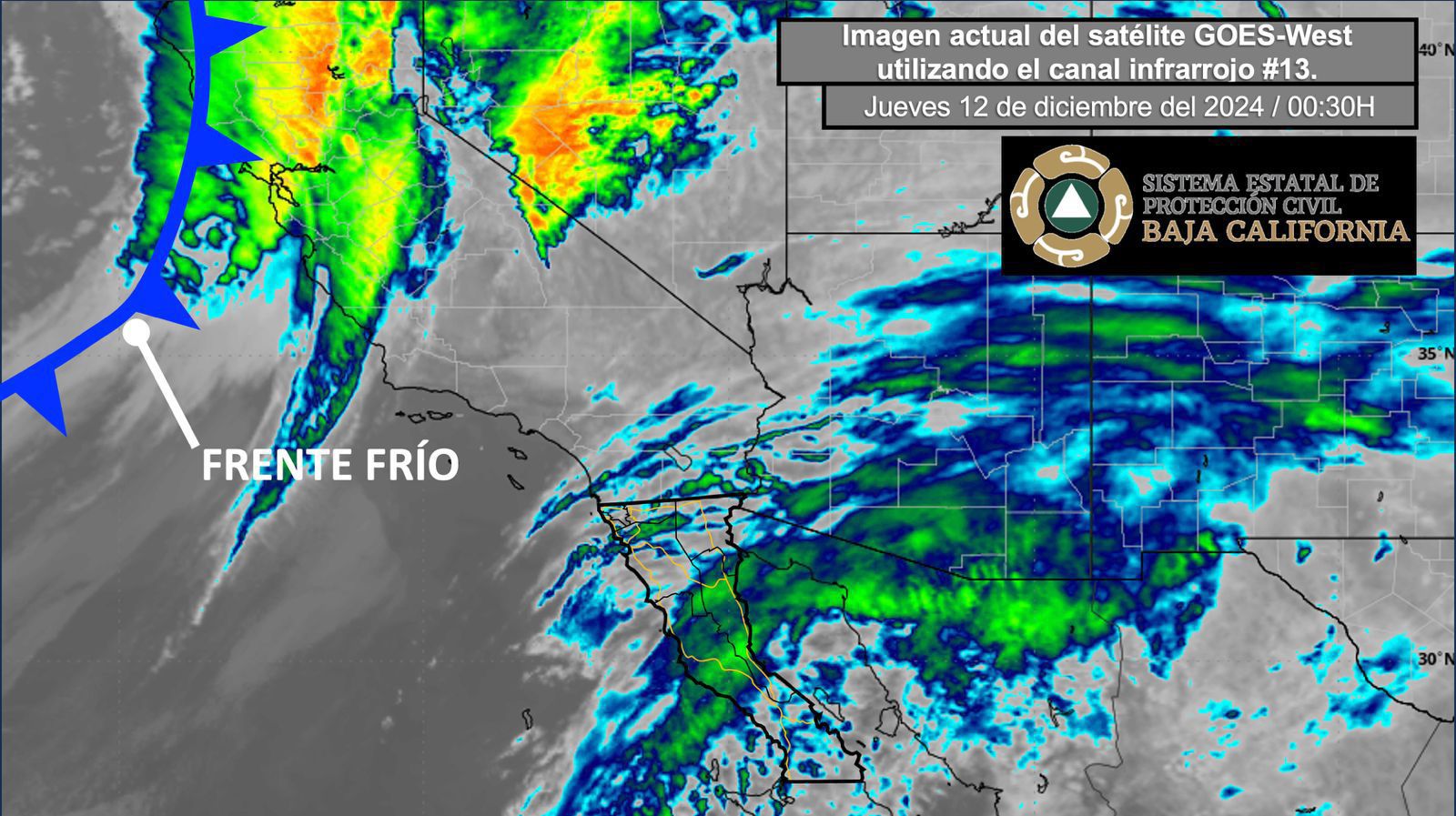 TIJUANA BC, 12 de diciembre de 2024.– La Coordinación Estatal de Protección Civil (CEPC) de Baja California informa a la población que, de acuerdo con el pronóstico meteorológico, un frente frío ingresará a la región durante la tarde de este jueves 12 de diciembre, aumentando la probabilidad de lluvias ligeras en algunas zonas del estado. Además, se esperan ráfagas de viento de entre 25 y 35 kilómetros por hora, así como un ligero descenso en la temperatura.