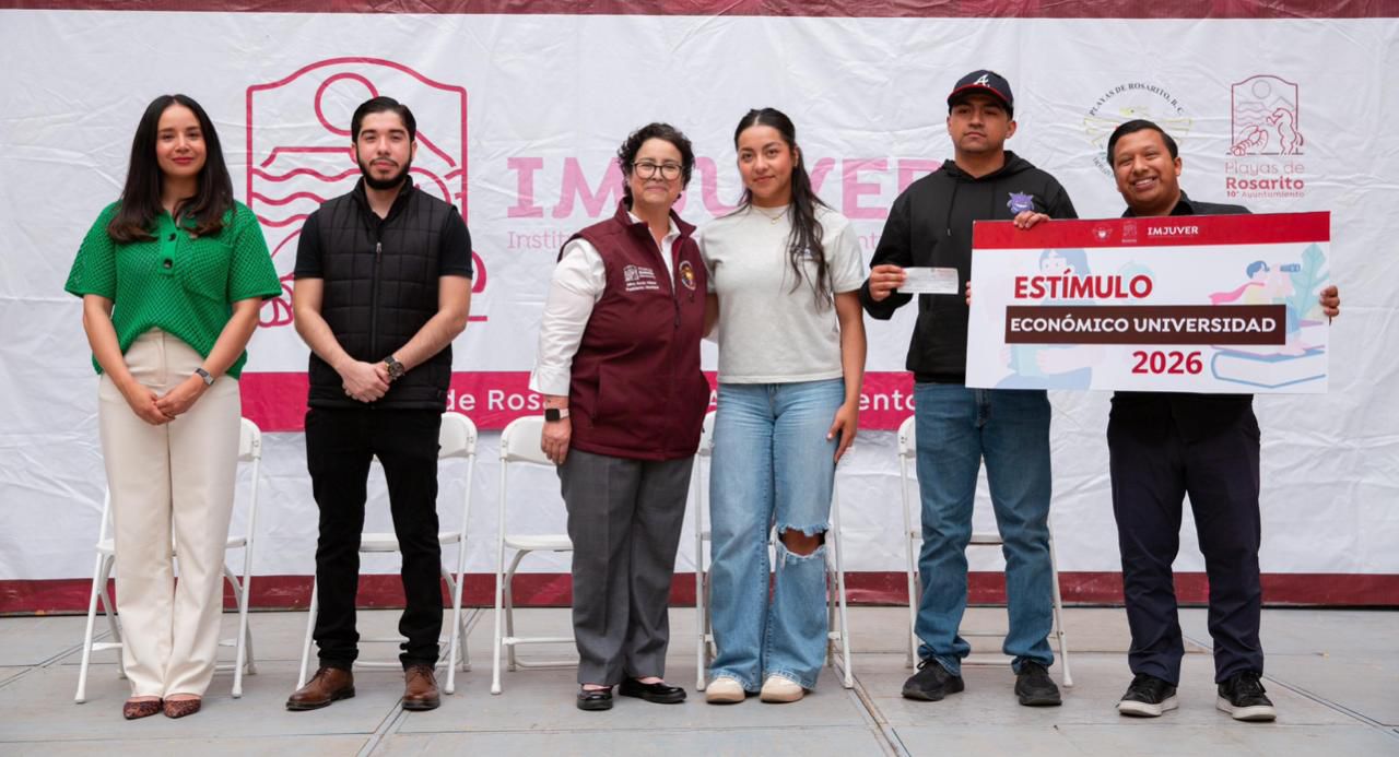 PLAYAS DE ROSARITO BC, 20 de marzo de 2026.- Con el objetivo de fortalecer la permanencia y el desarrollo académico de la juventud, el 10° Ayuntamiento de Playas de Rosarito, llevó a cabo la entrega de estímulos económicos a estudiantes universitarios del municipio, a través del Instituto Municipal de la Juventud (IMJUVER).