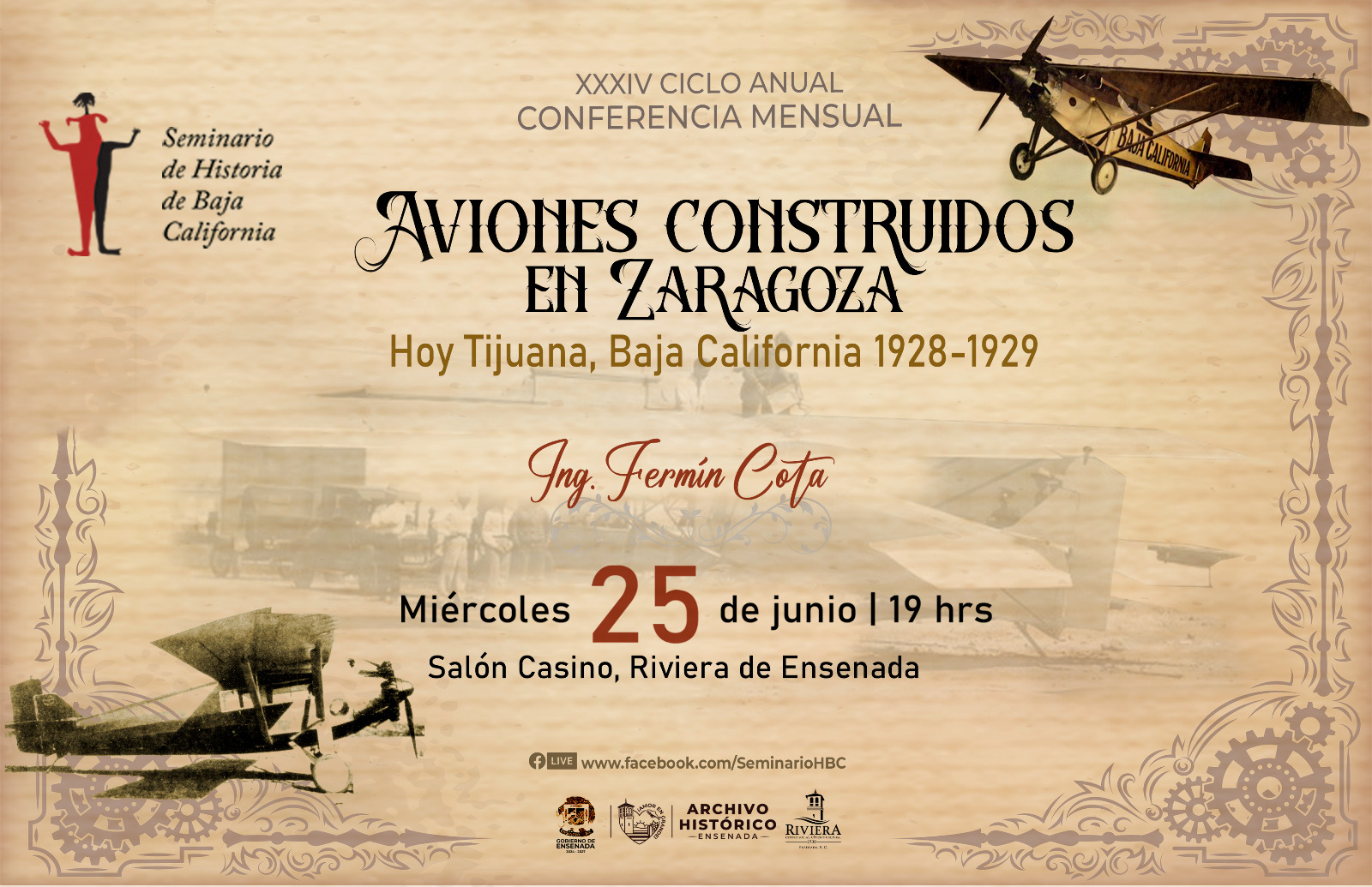 ENSENADA BC, 19 de junio de 2025.- Para dar a conocer el tipo de aeronaves que se construían a finales de los años 20, integrantes del Seminario de Historia de Baja California tendrán en el Centro Cultural Riviera la conferencia “Aviones construidos en Zaragoza 1928-1929”, en próximo 25 de junio a las 19:00 horas.