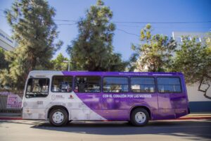 ENSENADA BC, 27 de noviembre de 2023.- La gobernadora de Baja California, Marina del Pilar Avila Olmeda, anunció el arranque de operaciones del Transporte Violeta en el municipio de Ensenada, con lo cual dicho sistema de transporte exclusivo para mujeres ya opera en cinco municipios y beneficia a miles de bajacalifornianas, así como a sus hijas e hijos menores de 12 años.