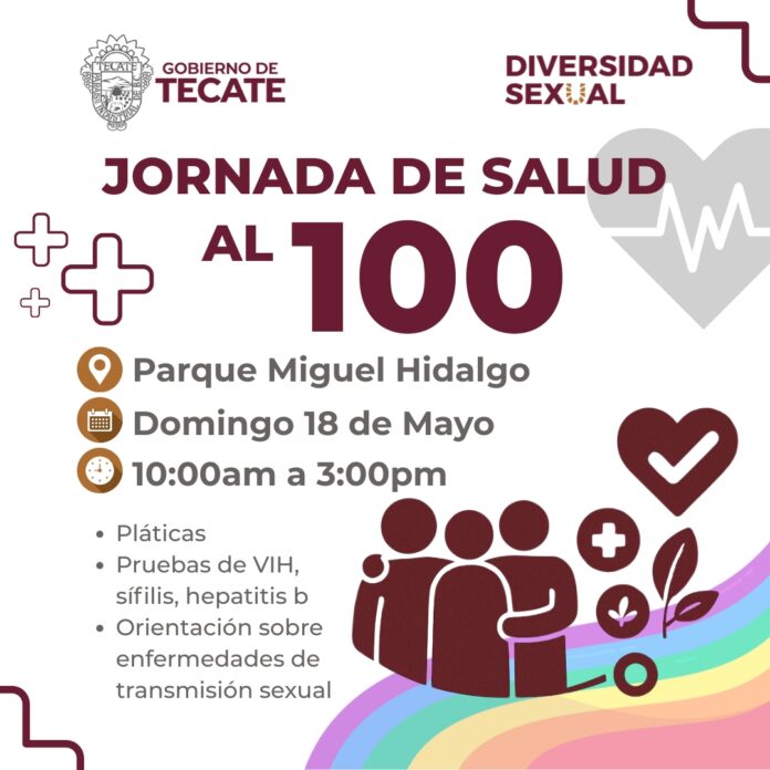 TIJUANA BC, 06 de mayo de 2025. — El Gobierno de Tecate, a través del Departamento de Diversidad Sexual, invita a la ciudadanía a participar en la Jornada de Salud al 100, un evento comunitario enfocado en la prevención, el autocuidado y la atención integral de la salud sexual.