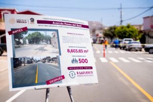 Acompañada del subdirector de Infraestructura, Jorge González Villegas y Oziel Fierro, contratista responsable de la obra, detalló que el proceso constructivo incluyó bacheo superficial, bacheo profundo, construcción de micro carpeta, señalamiento y pintura tanto horizontal como vertical.