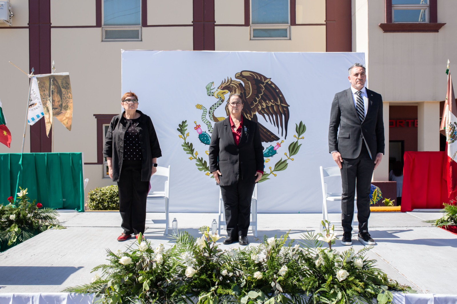 Durante la ceremonia, la regidora Mayra Robles Aguirre dio lectura a una reseña sobre el significado del Día de la Bandera y enfatizó los colores que dan identidad al Lábaro Patrio: el verde de esperanza, el blanco de unidad y el rojo, que representa la sangre de los héroes nacionales que han luchado por nuestra patria.