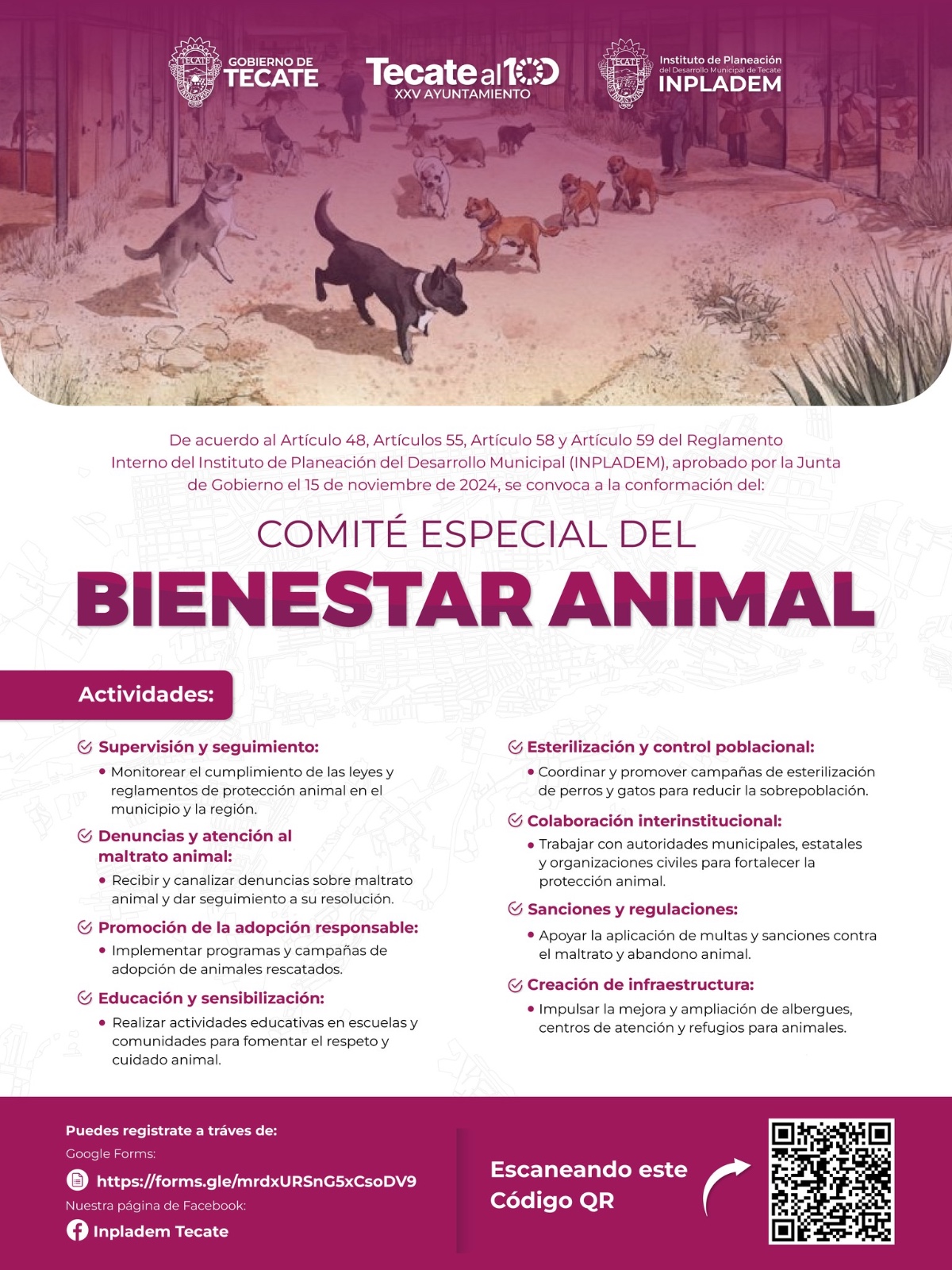 TECATE BC, 18 de febrero de 2025.– El Instituto de Planeación del Desarrollo Municipal (INPLADEM) de Tectate, convoca a la ciudadanía a participar en la conformación del Comité Especial del Bienestar Animal.