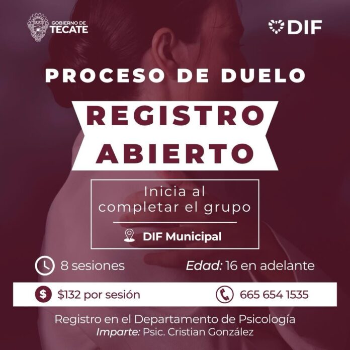 TECATE BC, 28 de abril de 2025 – El Sistema para el Desarrollo Integral de la Familia (DIF) Municipal de Tecate extiende una cordial invitación a la comunidad para participar en el programa de apoyo emocional “Proceso de Duelo”, un espacio seguro y de contención, que ofrecerá orientación psicológica y tanatológica a aquellos que enfrentan la difícil experiencia de una pérdida significativa.