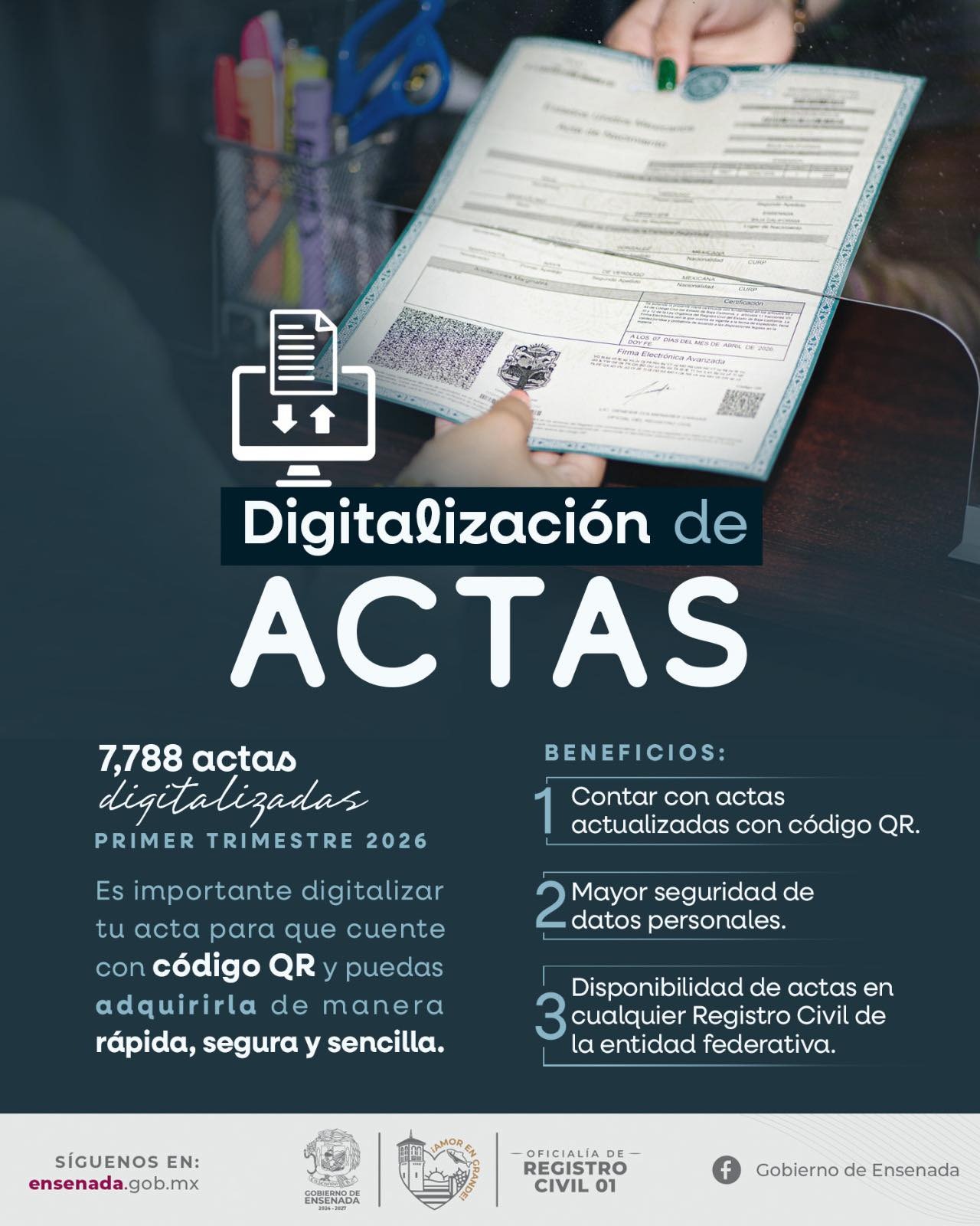 ENSENADA BC, 20 de abril de 2026.- Con más de 7 mil actas digitalizadas, el Gobierno de Ensenada avanza en las acciones para lograr un gobierno facilitador y cercano a la gente.
