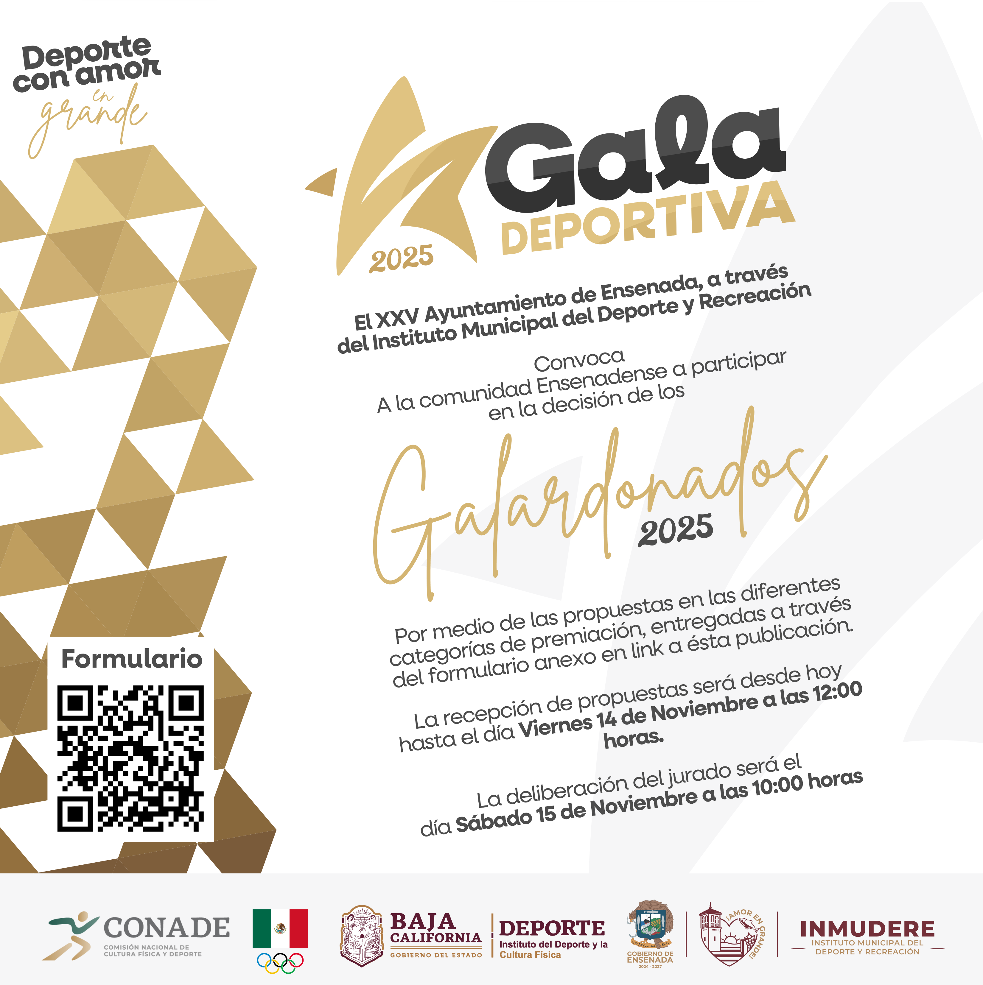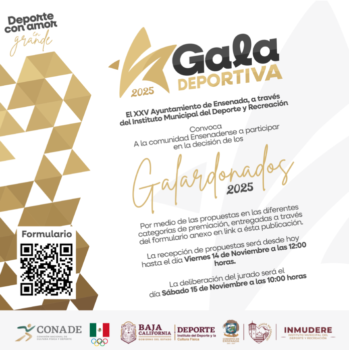 ENSENADA BC, 09 de noviembre de 2025.- El gobierno de la presidenta Claudia Agatón Muñiz, a través del Instituto Municipal del Deporte y Recreación de Ensenada invita a la comunidad ensenadense a formar parte del proceso de selección de los Galardonados 2025, dentro del marco de la Gala Deportiva.