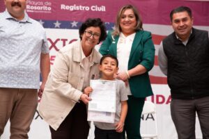 La presidenta municipal agradeció el respaldo de la gobernadora Marina del Pilar Ávila Olmeda y reconoció el compromiso del oficial del Registro Civil de Playas de Rosarito, cuya labor ha permitido acercar este importante servicio a la comunidad de manera gratuita y con un alto sentido de responsabilidad social.