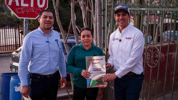 TECATE BC, 26 de febrero de 2026.– Para fortalecer el patrimonio de las familias tecatensese y brindarles certeza jurídica sobre su hogar, el alcalde Román Cota Muñoz realizó la entrega de títulos de propiedad a familias de la colonia Escudero, reafirmando su compromiso de reforzar la economía familiar.