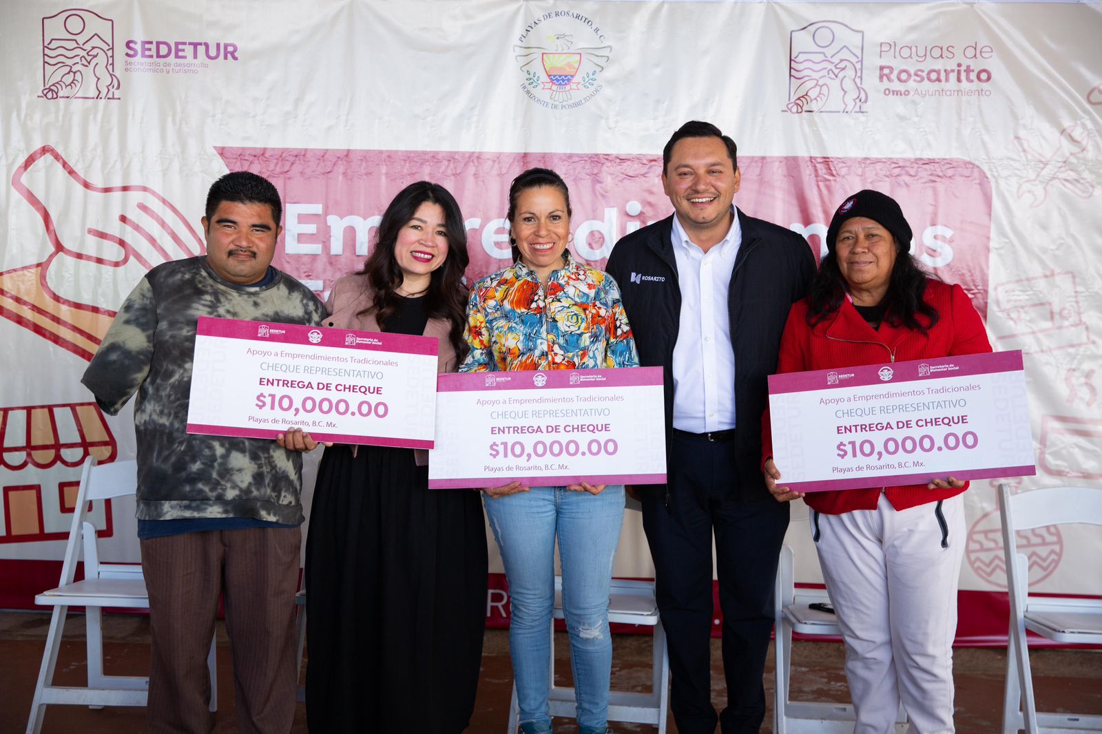 PLAYAS DE ROSARITO BC, 20 de enero de 2026.- En seguimiento a la política de bienestar, desarrollo económico incluyente y fortalecimiento de la economía local impulsada por la Presidenta Municipal de Playas de Rosarito, Rocio Adame, el 10° Ayuntamiento de Playas de Rosarito, a través de la Secretaría de Desarrollo Económico y Turismo (SEDETUR), en coordinación con la Secretaria de Economía e Innovación de Baja California, llevó a cabo la Entrega de Apoyos a Emprendimientos Tradicionales “Rosarito Activo”, beneficiando en esta etapa a 42 emprendedoras y emprendedores del municipio.