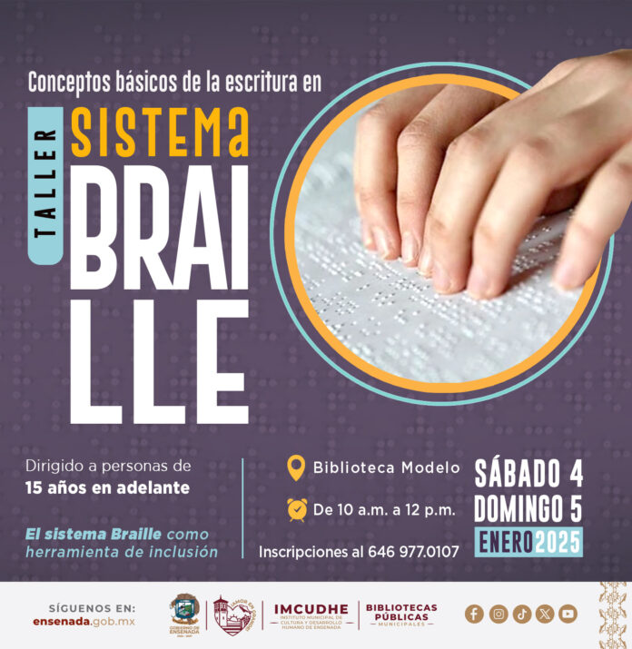 Ensenada.- El Gobierno de Ensenada realizará un taller para mayores de 15 años de edad, sobre conceptos básicos en la lectoescritura en Sistema Braille. Esto como parte de las acciones en materia de inclusión.