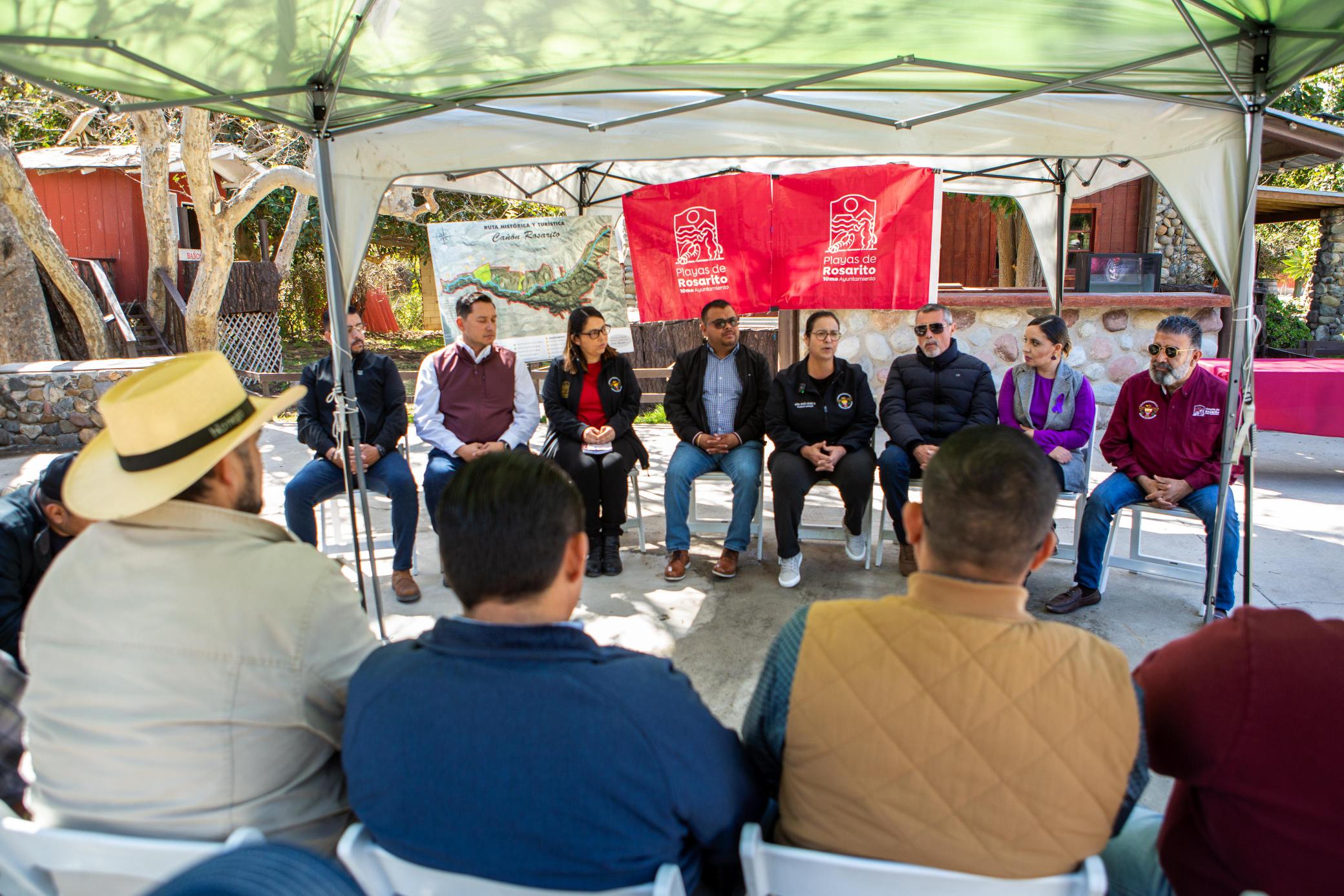 PLAYAS DE ROSARITO BC, 04 de marzo de 2025.-* La presidenta municipal, Mtra. Rocio Adame Muñoz, acompañada por integrantes de su gabinete, sostuvo una reunión con propietarios de ranchos ubicados en el Cañón Rosarito, con el objetivo de establecer un diálogo constructivo para detonar la ruta ecoturística de la ciudad.