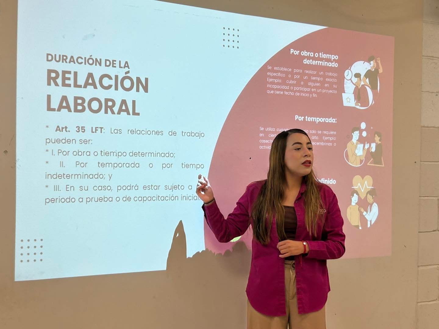 Durante la jornada, las y los jóvenes participantes conocieron información fundamental sobre sus derechos y obligaciones dentro del ámbito laboral, así como la importancia de contar con condiciones dignas de trabajo, contratos formales y seguridad social.