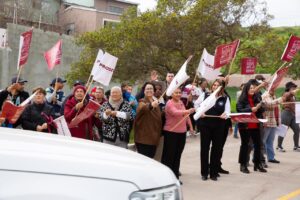 PLAYAS DE ROSARITO BC, 22 de enero de 2026/- La Presidenta Municipal de Playas de Rosarito, Rocío Adame, llevó a cabo la inauguración de la obra de pavimentación con concreto hidráulico en la colonia La Mina, en las vialidades Mina del Coronel y Mina del Valle, una acción prioritaria que fortalece la movilidad urbana y mejora la calidad de vida de las familias de esta zona del municipio.