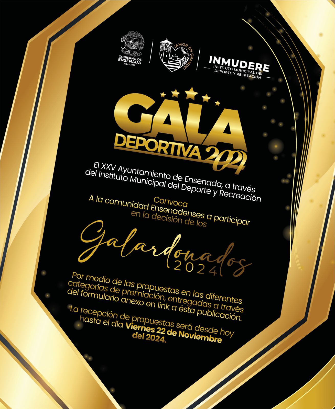 ENSENADA BC, 15 de noviembre de 2024.- El XXV Ayuntamiento de Ensenada, a través del Instituto Municipal del Deporte y Recreación, convoca a la comunidad a unirse en la selección de los destacados deportistas que serán homenajeados durante la Gala Deportiva 2024.